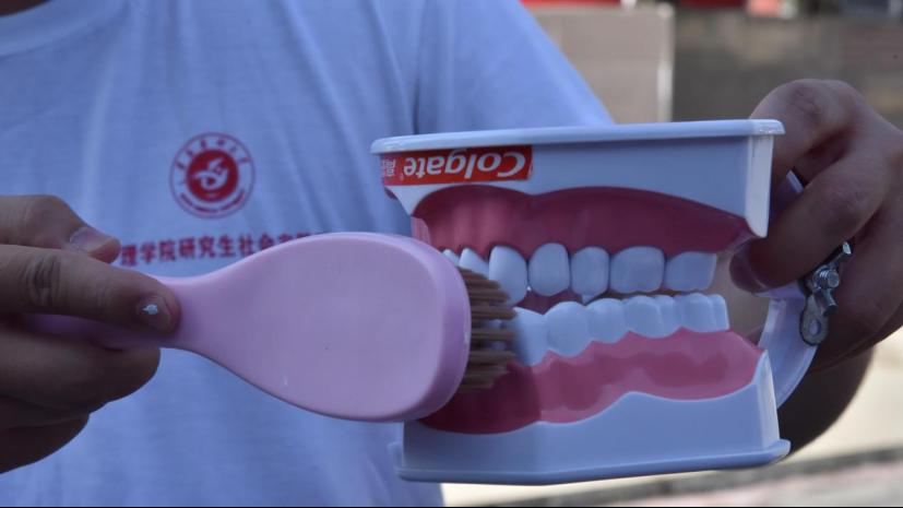 “健康口腔,幸福老年”健康口腔检查小分队为居民进行口腔检查,教会居民正确的洁牙护齿方法,向居民普及口腔健康知识。