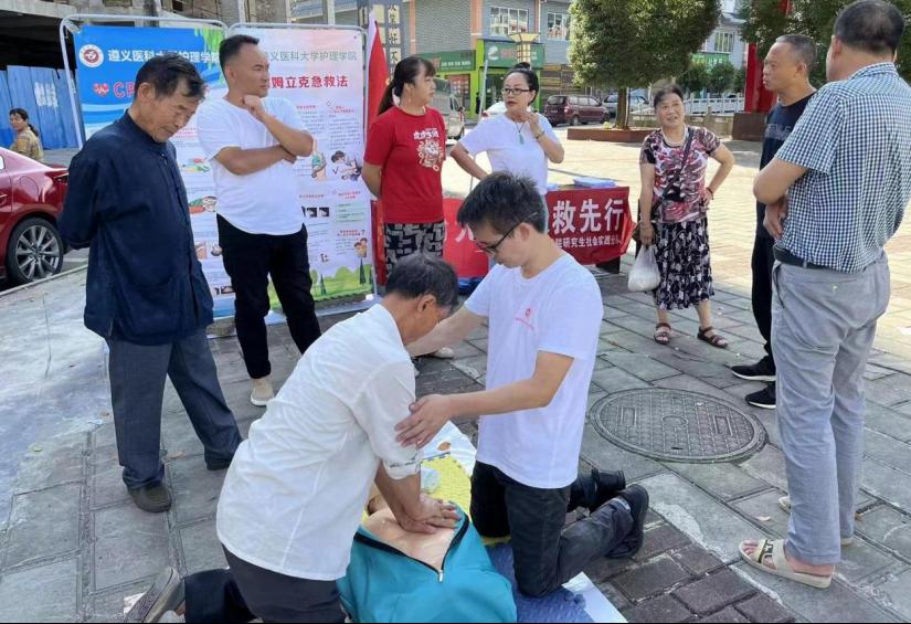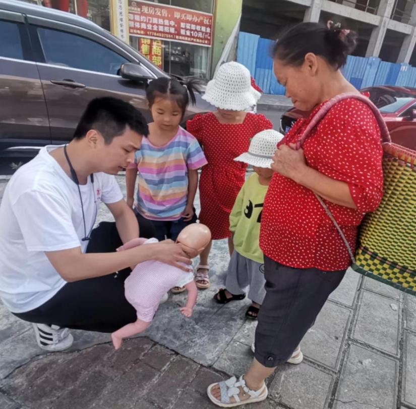 “生命无价,急救先行”急救培训实践小分队通过现场讲解演示心肺复苏和海姆立克急救法,并对现场居民进行一对一的急救技能培训,提高居民的自救互救能力。