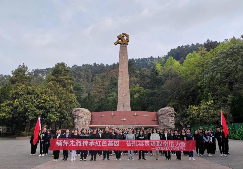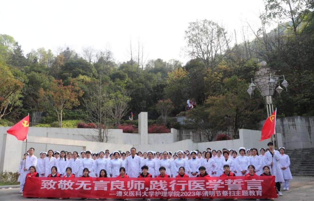 为深入学习宣传贯彻党的二十大精神,缅怀革命先烈,铭记丰功伟绩,引领广大师生赓续红色血脉,发扬人道、博爱和奉献精神。2023年4月2日,尊龙亚洲官网公司党委书记张咏梅,党委副书记、经理邓仁丽,党委副书记陈伟带领学院80余名师生党员前往遵义红军烈士陵园、遵义市遗体器官捐献纪念碑开展清明祭扫活动。