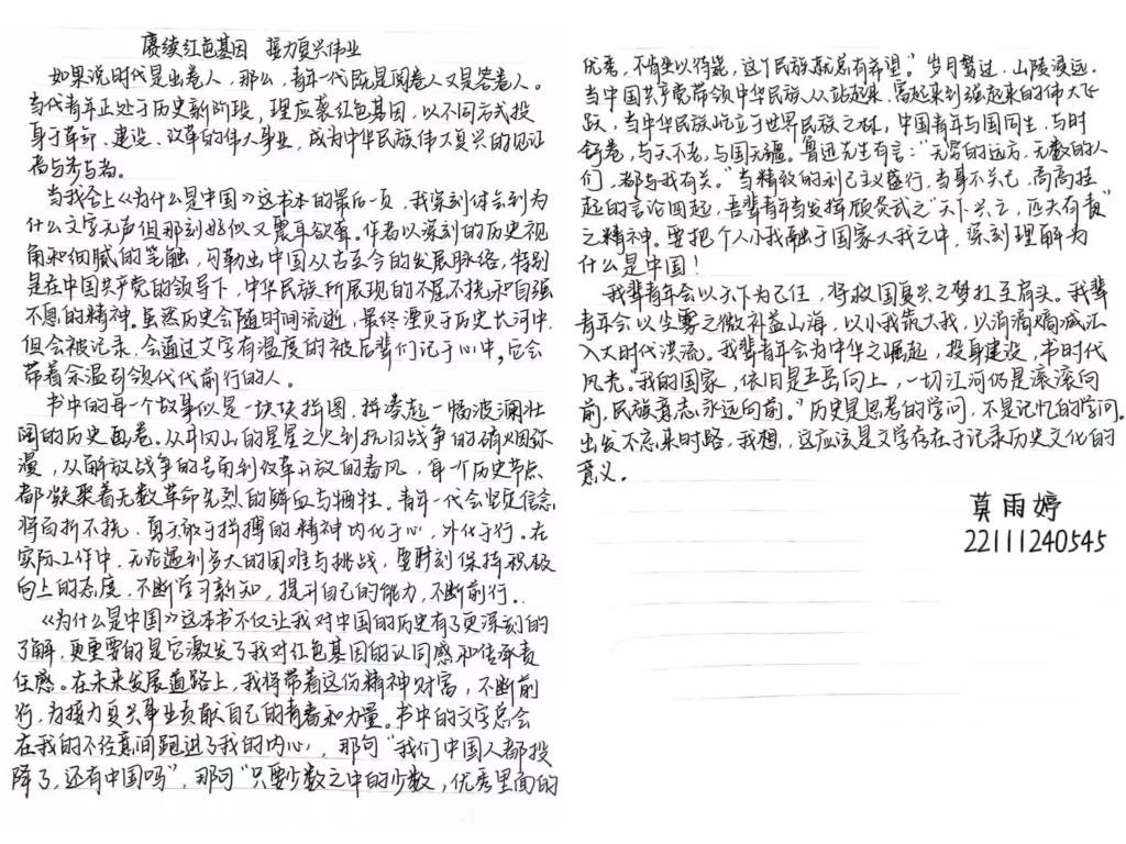 品读红色经典,书写精彩人生。在新蒲校区各教室,2022级师生以团支部为单位,精心组织了征文比赛和主题活动。同学们主要围绕在红色文学作品中收获的情感体验和精神成长,共计提交优秀作品30余份。此外,各班团支书还带头积极推荐和分享了自己近期阅读的《活着》《时间简史》《许三观卖血记》《平凡的世界》《追风筝的人》等经典书籍,让大家通过阅读,不断充实知识储备,提升综合素质和能力水平。