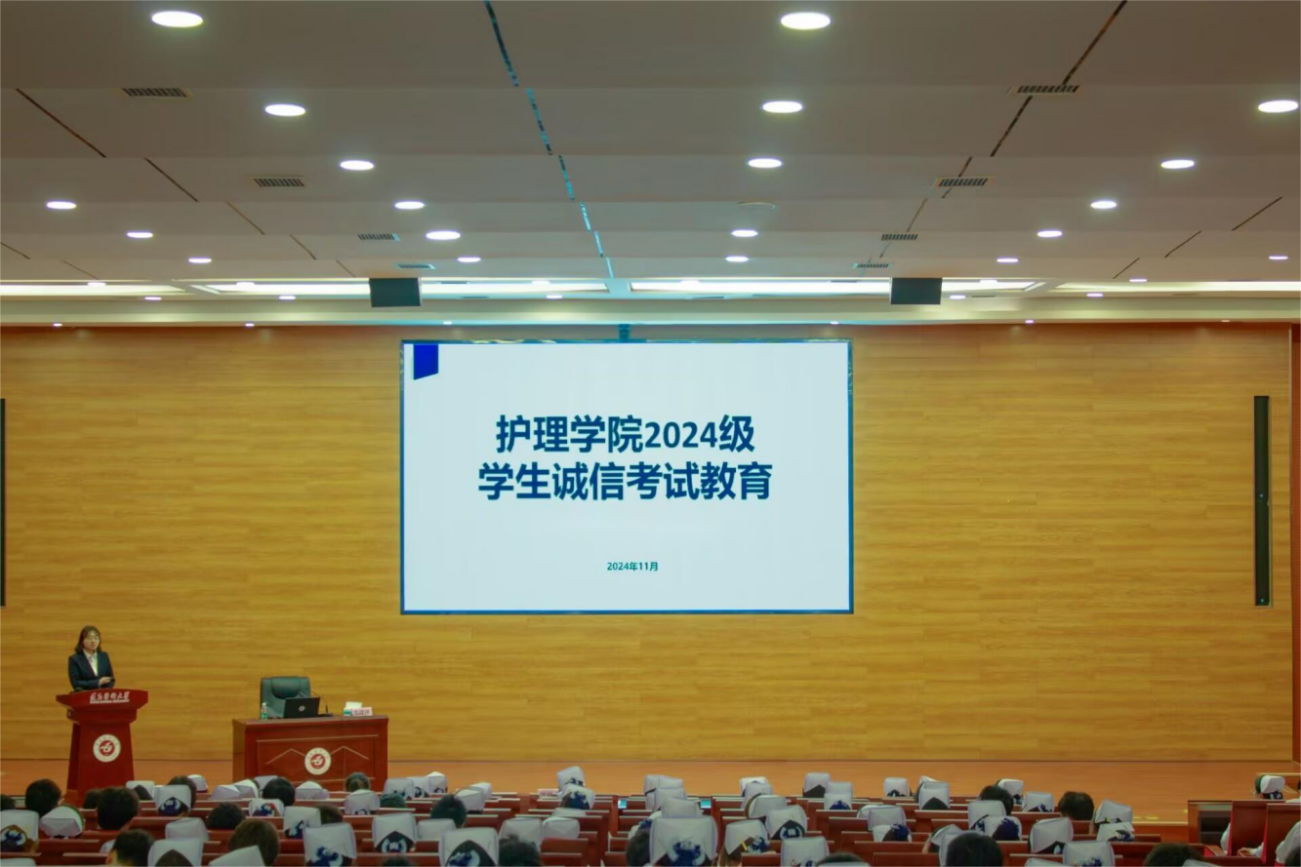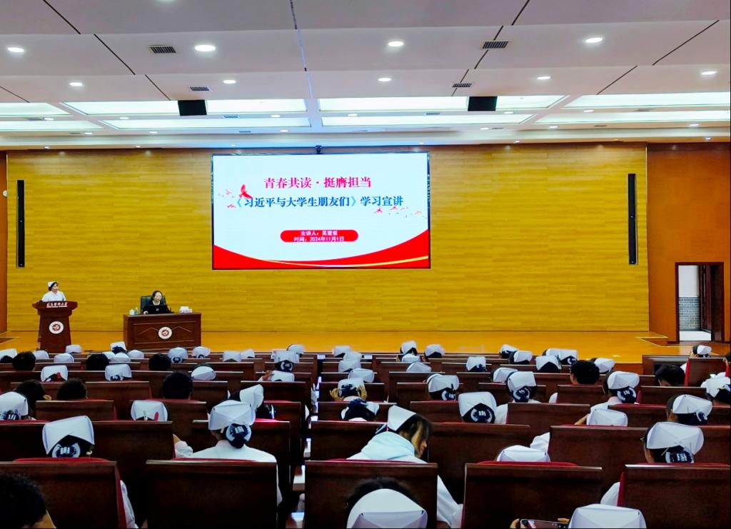 为引导青年学子坚定理想信念,努力成为有理想、有道德、有能力、敢担当的新时代护理新人,2024年11月1日15:00,尊龙亚洲官网在道德讲堂举行2024级新生思想政治教育大会。公司党委书记张咏梅,公司党委副书记陈伟,公司党委委员、员工第二党支部书记权明桃,学院团委副书记吴雪双及2024级400余名本科新生参加,会议由年级辅导员高婷婷主持。
