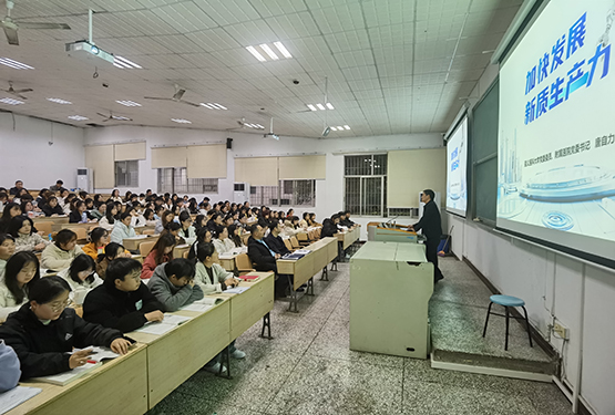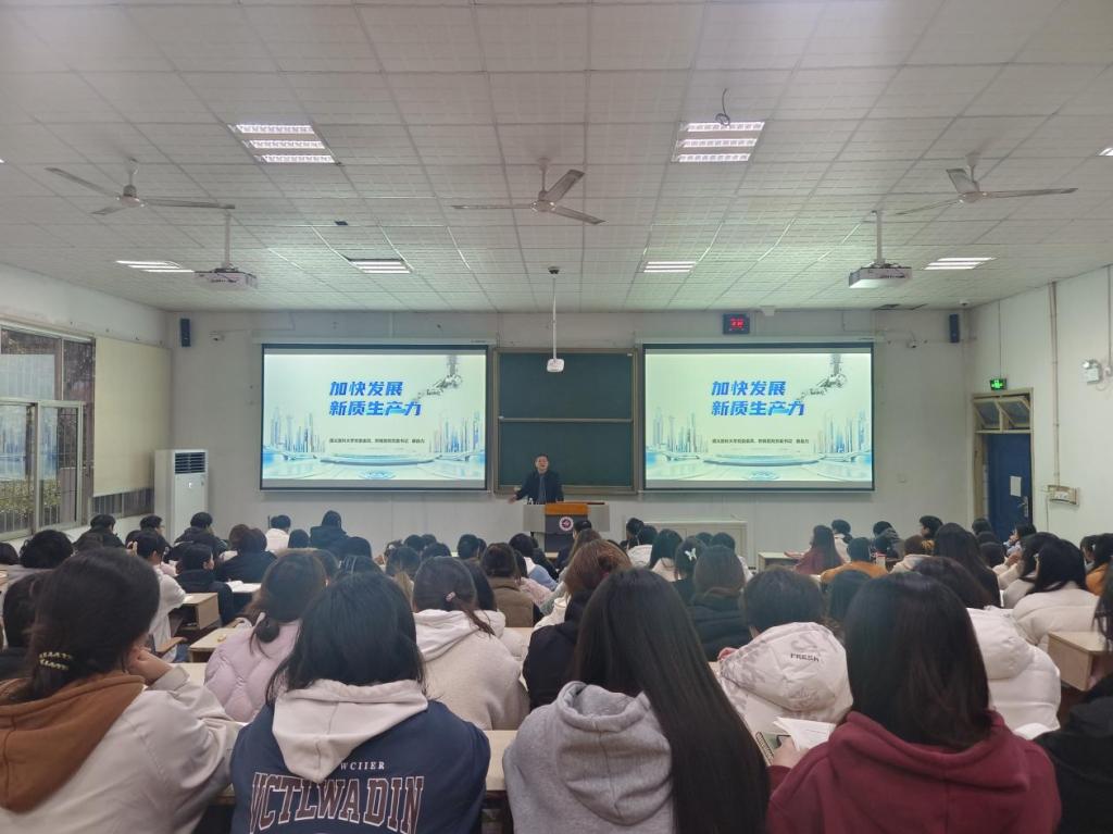 唐自力书记围绕事关全局的国之大者、创新质优的质态特征、统筹推进的系统工程三个方面,结合党的十一届三中全会以来改革开放和社会主义现代化的伟大征程所取得的辉煌成就,对为何要发展新质生产力、如何全面准确理解新质生产力的内涵、怎样推进新质生产力的发展工作、发展新质生产力所面临的机遇和挑战进行了全面系统地讲解。以此帮助同学们更加全面、深刻地理解新质生产力的科学内涵,要求同学们努力为新质生产力蓄势赋能,积极为推进高质量发展彰显青年担当。