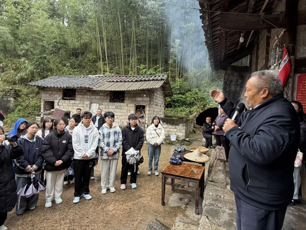 上午9:00,师生们走进平溪村磨刀溪战斗遗址陈列室,在退休老教师、实践育人导师罗光发的深情讲述中,重温那段峥嵘岁月。他娓娓道来当年红军在磨刀溪激烈战斗的经过,以及当地群众舍生忘死掩护红军的感人故事。一个个真实的故事,一幕幕军民鱼水情深的场景,深深打动了在场的每一位师生,也在他们心中埋下了红色信仰的种子。