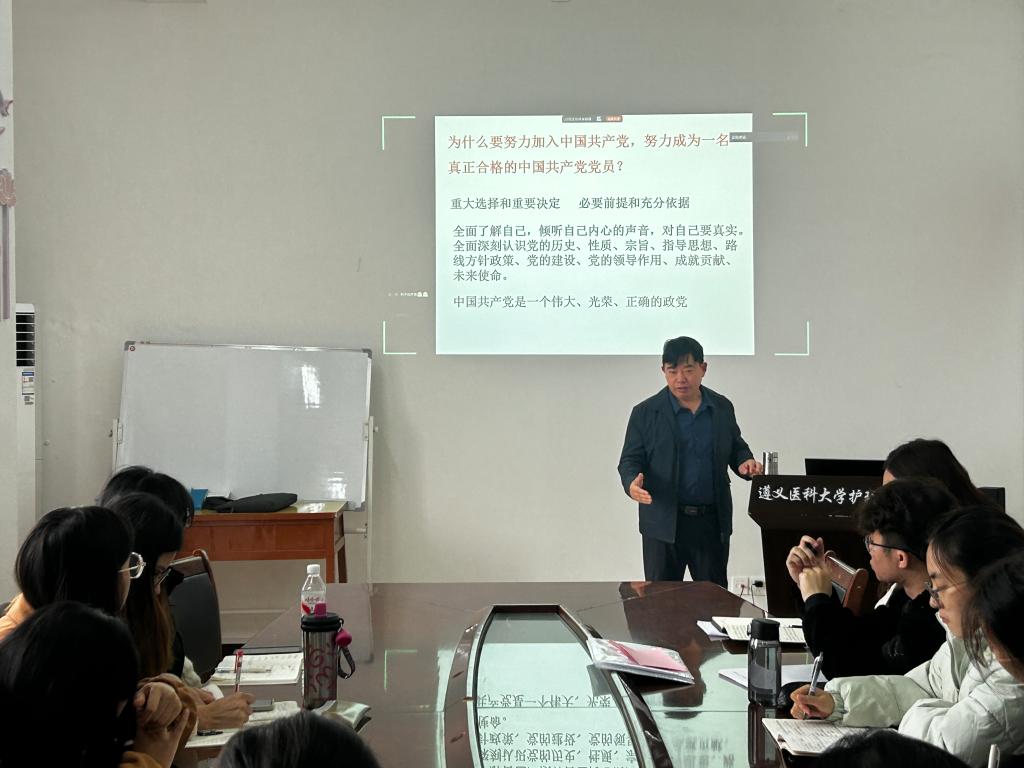 课上,黎宇老师以最近热播的纪实性正剧《沉默的荣耀》切入“信仰”这一主题,进而从“什么是入党动机、端正入党动机的重要性、当代老员工入党动机分析、如何培养树立正确的入党动机”等方面进行阐述。他指出,正确的动机是思想上入党的根本前提,是经受住各种考验的精神支柱,更是成长为合格党员的起点。黎老师勉励在场学员在思想上主动对标党员标准,在学业上深耕专业知识,在实践中锤炼责任担当,以“坚定信仰、奋勇向前”的姿态,为护理事业发展与健康中国建设贡献青春力量。