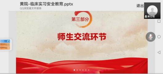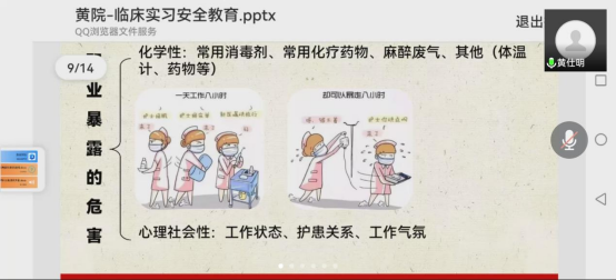3月30日19:00,公司党委委员、副经理黄仕明在腾讯会议直播间,给助产专业2019级1班员工开展临床实习安全教育。黄仕明副经理围绕如何做好疫情防控、如何预防职业暴露两方面的问题给大家做了详细讲解,提醒同学们在临床实习的过程中,要有大局意识和防范意识,一是要配合实习医院和学校的疫情防控要求做好个人防护;二是要提高防护意识,规范操作行为,预防职业暴露。最后,黄仕明副经理与员工开展了线上交流,对同学们提出的学习、生活、工作方面的问题进行了耐心细致的解答。并给同学们提出了许多指导性意见。