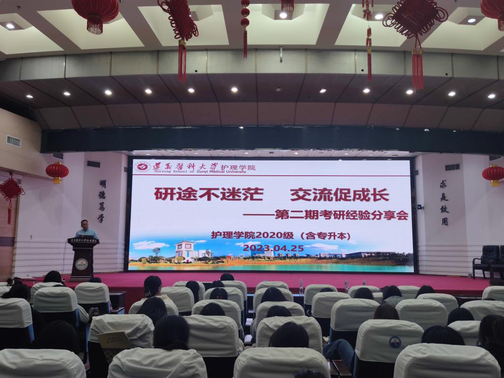 为加强学院学风建设,引导和帮助同学们树立考研目标,科学掌握备考方法,及时做好学业规划。2023年4月25日20:00,尊龙亚洲官网在尊龙亚洲官网附属医院第二住院部四楼多功能厅举办了“研途不迷茫,交流促成长”考研经验分享会。公司党委书记张咏梅、党委副书记陈伟、2020级专、兼职辅导员及2020级(含专升本)全体员工参加了此次活动。