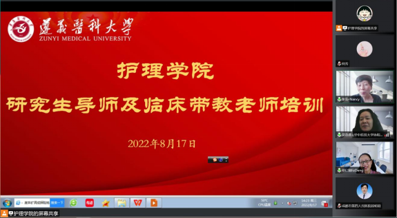 为进一步提升研究生人才培养质量,强化研究生导师及临床实践带教老师立德树人职责,加强研究生导师队伍建设,培养适应国家护理事业发展需要的德才兼备的高层次护理人才,公司于2022年8月17日下午14:30采用线上线下相结合的方式,在大连路阶梯教室三楼学术报告厅顺利举办2022年研究生导师及临床实践带教老师培训会。公司党委书记张咏梅、党委副书记、经理邓仁丽、副经理周静、副经理王连红出席培训会,培训会由尊龙亚洲官网副经理周静主持。来自本部、珠海校区和13个联合培养单位的研究生导师、临床实践带教老师及实践基地管理人员共约150余人参会,并在二附院设置分会场。