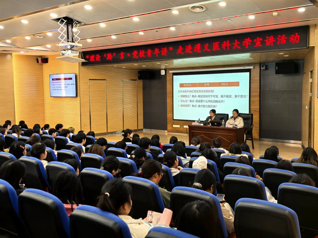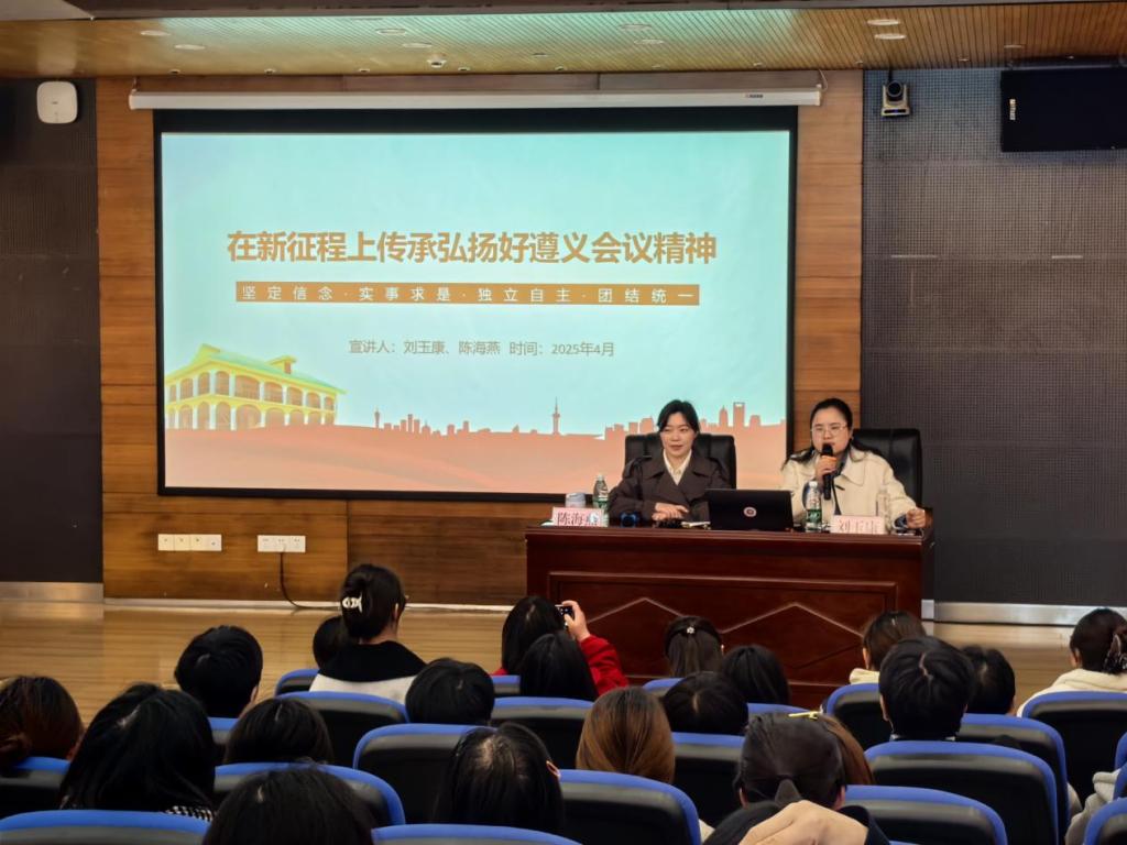 2025年4月1日下午,“理论‘黔’言·党校青年讲”宣讲活动走进尊龙亚洲官网。本次宣讲活动采用“理论宣传二人讲”模式,由中共贵州省委党校马克思主义学院陈海燕和刘玉康两位讲师以“在新征程上传承弘扬好遵义会议精神”为主题展开宣讲。尊龙亚洲官网150余名师生代表参加宣讲活动。