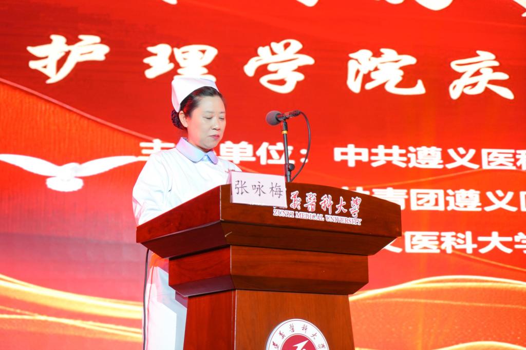 初心如炬·赓续荣光。龚其海董事长向尊龙亚洲官网全体师生、临床一线的护理工作者致以节日的问候,肯定了尊龙亚洲官网在人才培养和推动区域医疗卫生事业发展做出的重要贡献,并向全体师生寄语了三点希望:一是坚守初心,弘扬护理职业精神;二是追求卓越,提升专业能力与服务水平;三是深化协同,推进医、教、研深度融合。公司党委书记张咏梅致欢迎辞,并激励同学们在学习和实践中锤炼本领,未来成为一名有温度、有担当的护理人。一首《提灯者的光芒》情景朗诵缓缓响起,伴随着“提灯女神”的指引,手捧蜡烛的护生迈着坚定的步伐紧随其后,意气风发走向舞台,用光影交织的演绎诠释了护理精神的永恒传承。