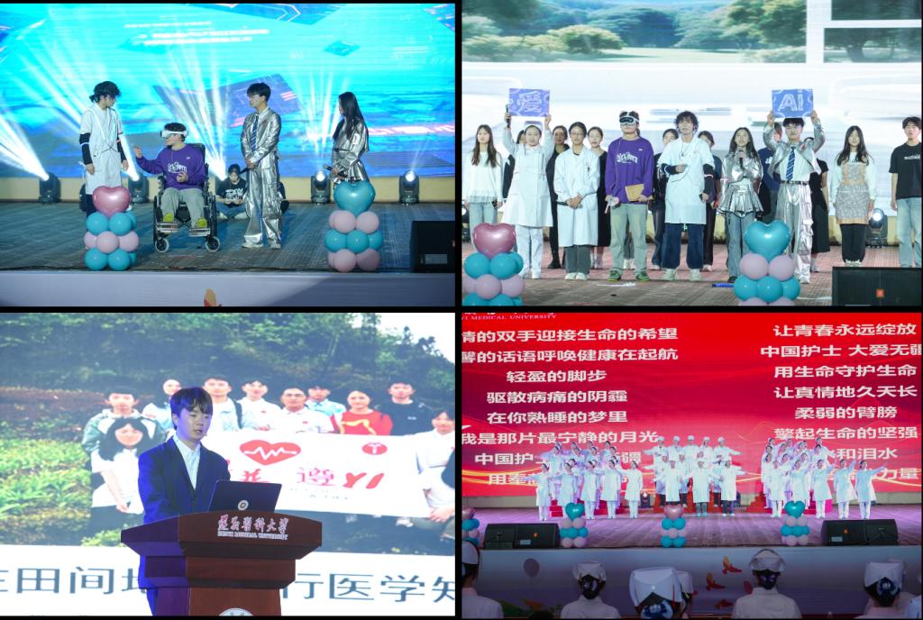 智慧赋能·青春逐梦。虚拟护士“小理”AI助手的演示惊艳全场,通过急救指导、心理疏导等实时交互功能,呈现智慧护理的无限可能。科普节目《预防跌倒disco》以活泼的歌舞形式普及老年护理知识,将专业术语转化为朗朗上口的歌词,寓教于乐;情景剧《守护生命—科学防治蛇咬伤》通过沉浸表演,传递急救技能与人文关怀并重的护理理念。老员工创新创业项目“创新引领未来 智慧守护健康”成果展,智能感应输液报警神器、自助配置蛇药智能系统等作品充分彰显了学子们将科技融入护理实践的探索精神。